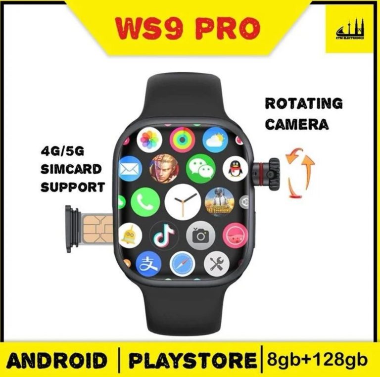 ساعت هوشمند WS9 Pro یک ساعت هوشمند سیم کارت خور جذاب می باشد که اگرچه مانند ساعت هوشمند S12A دوربین چرخان 120 درجه ای دارد اما قیمت آن در حدود نصب این ساعت هوشمند می باشد و از طریفی کیفیت بسیار مناسبی دارد. این ساعت هوشمند اندرویدی مانند دیگر اسمارت واچ های اندرویدی امکان نصب انواع اپلیکیشن های اندرویدی، مکالمه، تایپ متن و … را دارد.